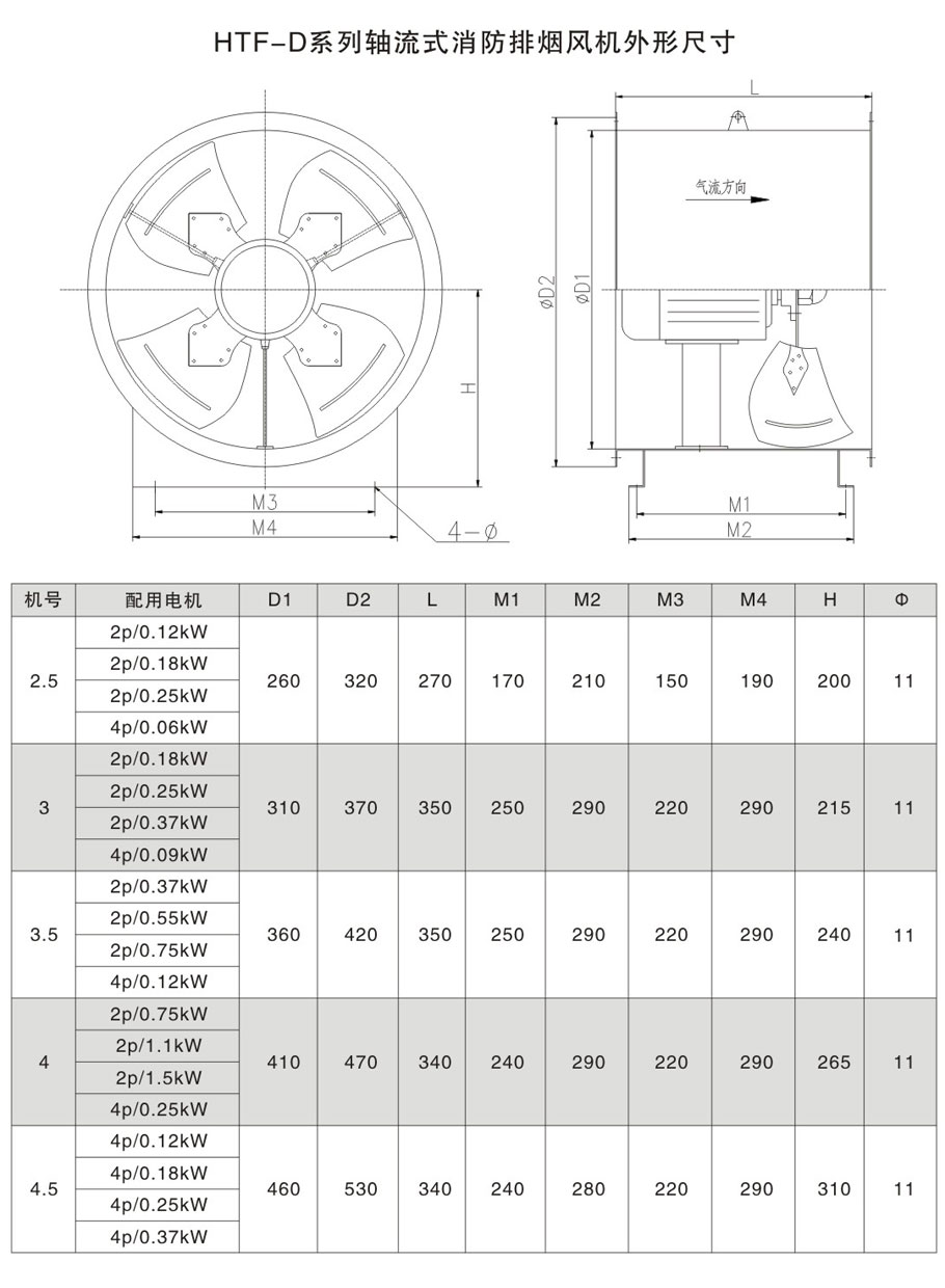 - HTF-D系列轴流式消防排烟风机